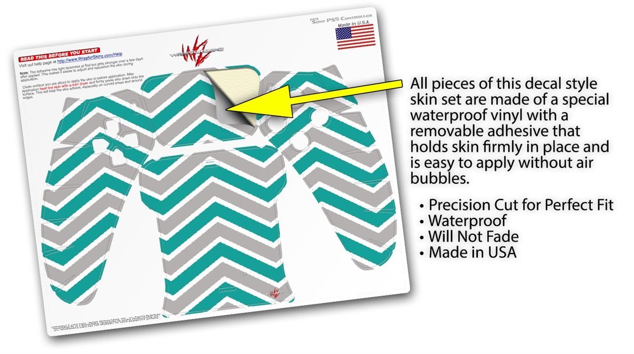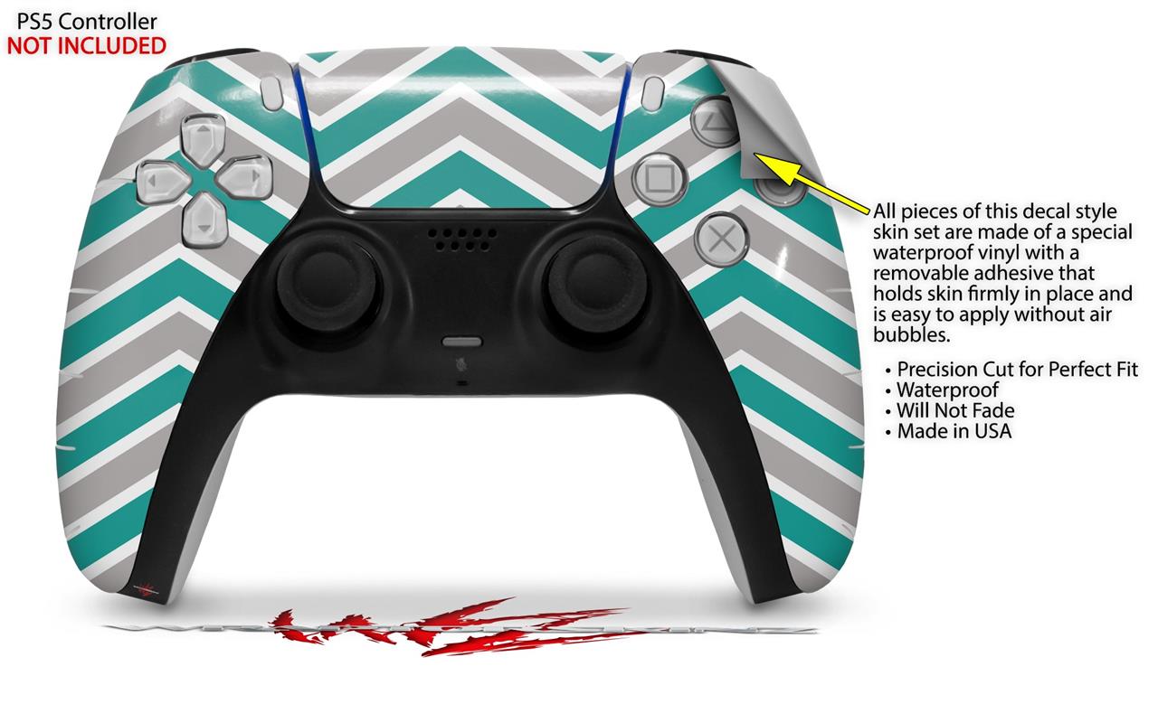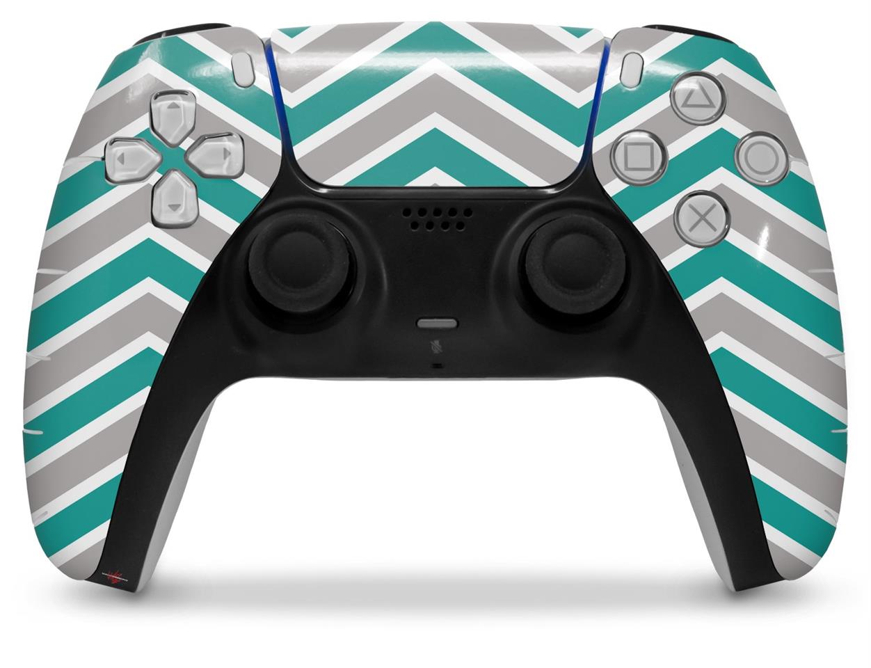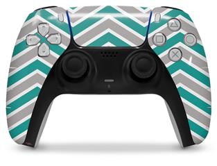 WraptorSkinz Skin Wrap compatible with the Sony PS5 DualSense Controller Zig Zag Teal and Gray (CONTROLLER NOT INCLUDED)