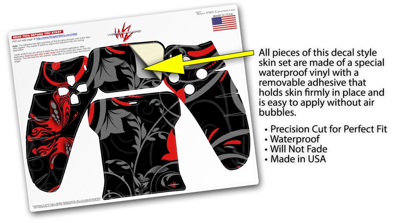 WraptorSkinz Skin Wrap compatible with the Sony PS5 DualSense Controller Twisted Garden Gray and Red (CONTROLLER NOT INCLUDED)