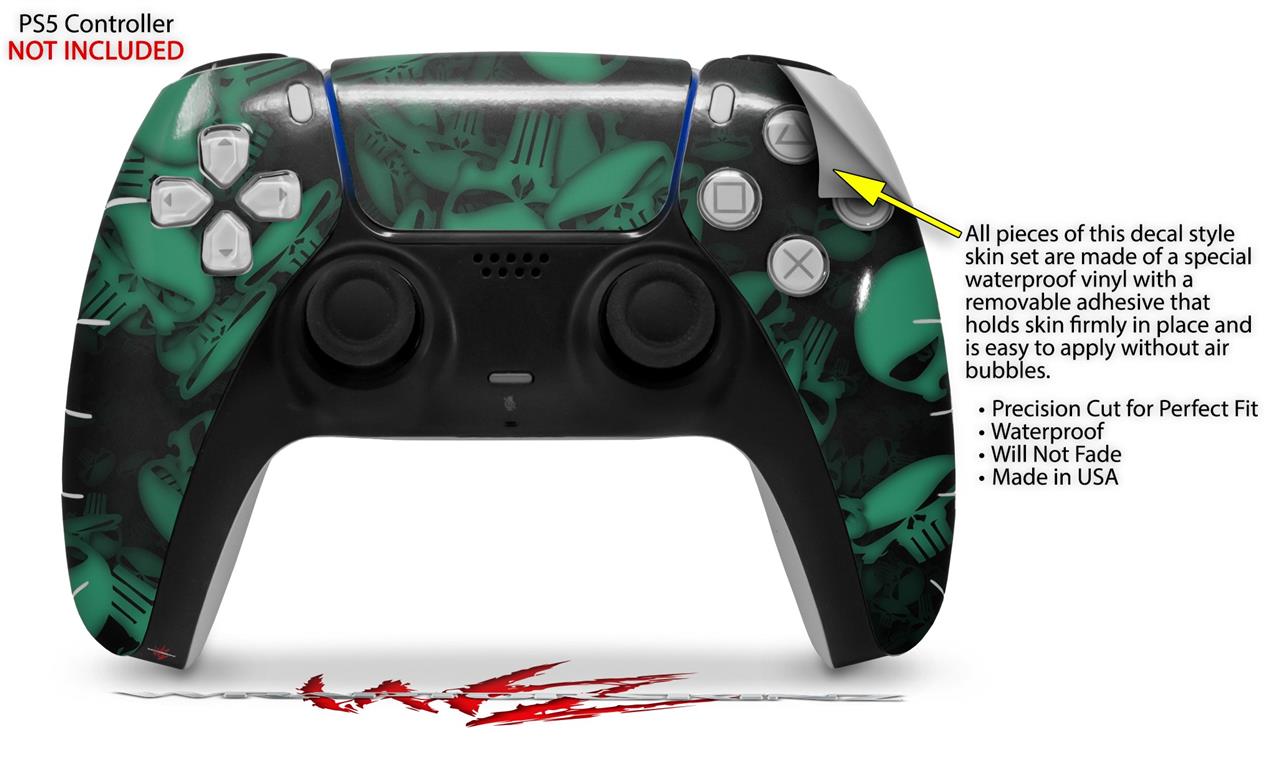 WraptorSkinz Skin Wrap compatible with the Sony PS5 DualSense Controller Skulls Confetti Seafoam Green (CONTROLLER NOT INCLUDED)