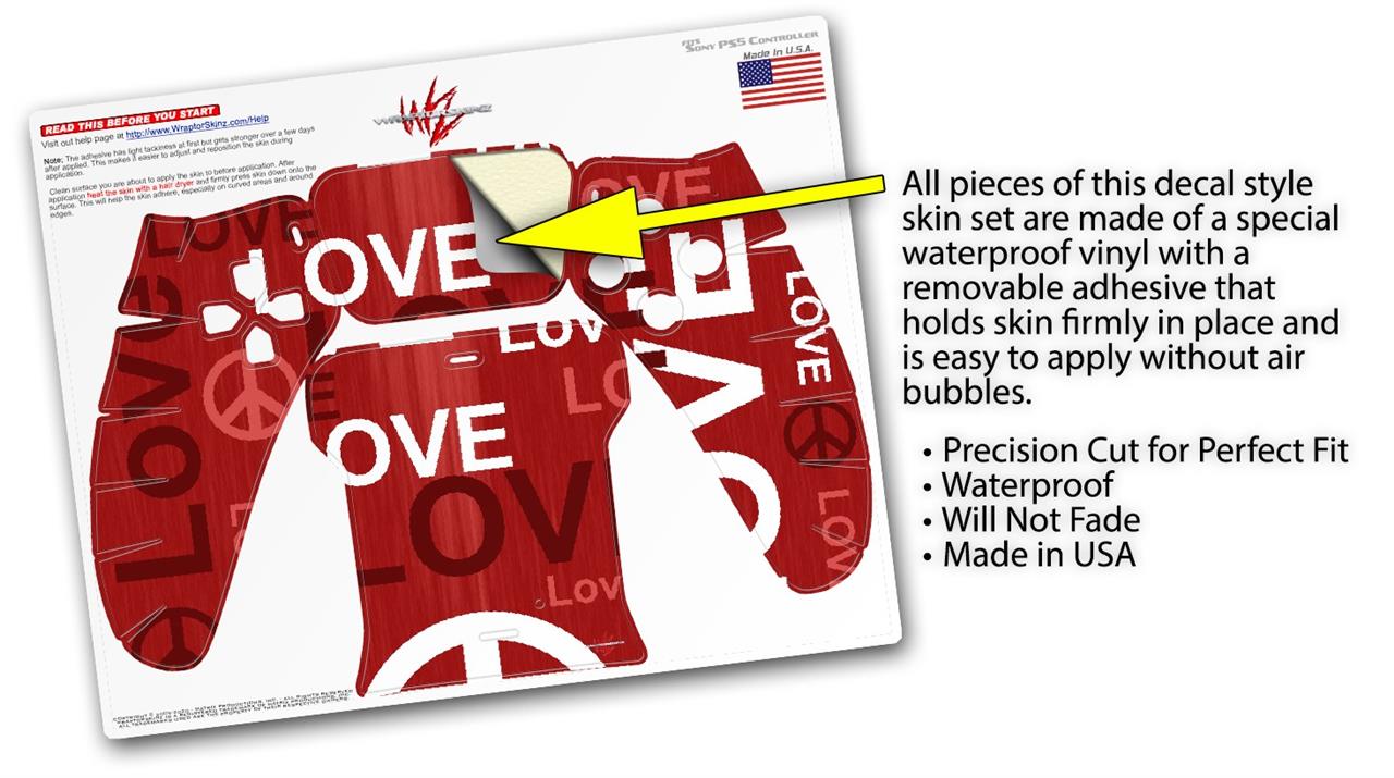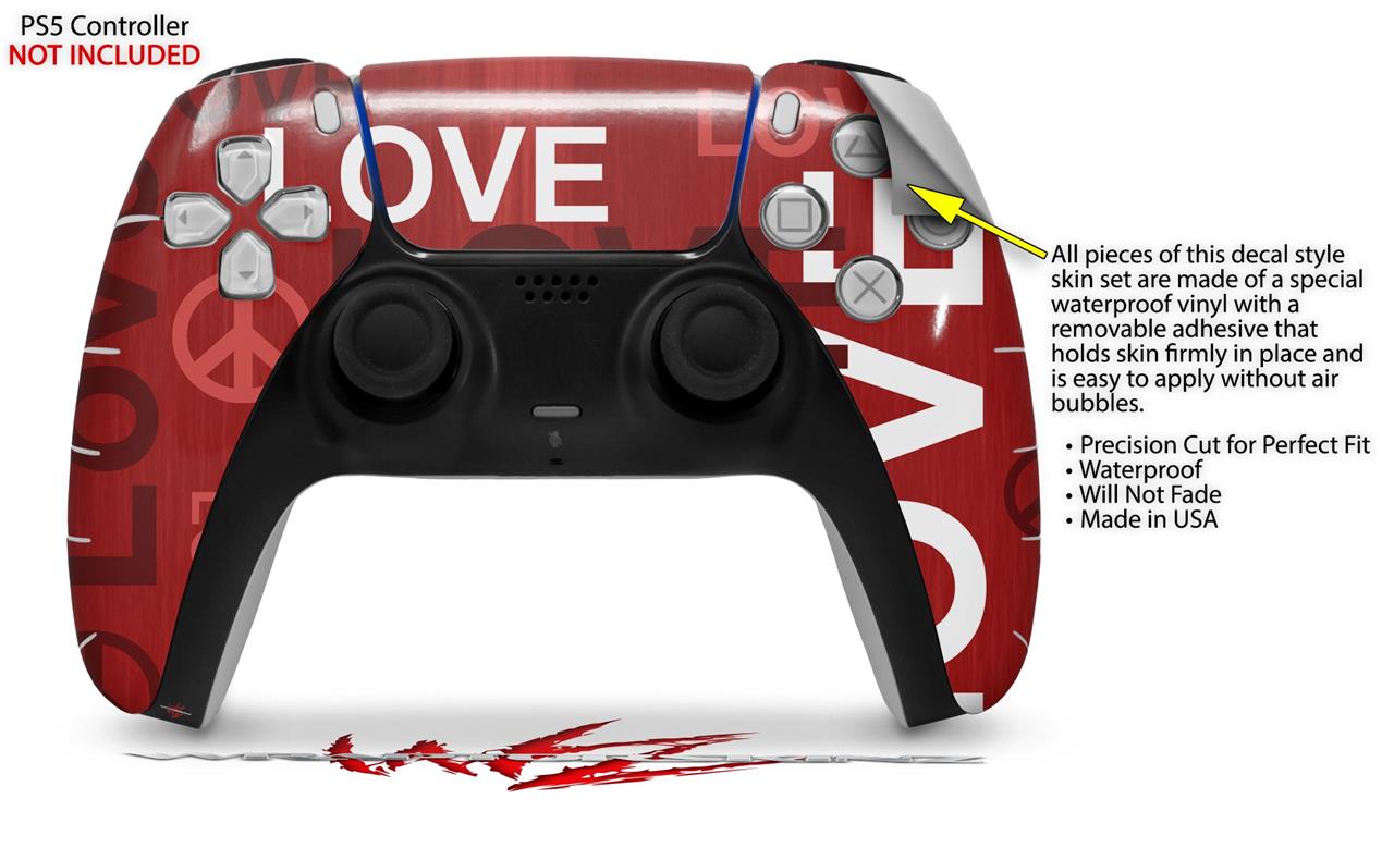 WraptorSkinz Skin Wrap compatible with the Sony PS5 DualSense Controller Love and Peace Red (CONTROLLER NOT INCLUDED)