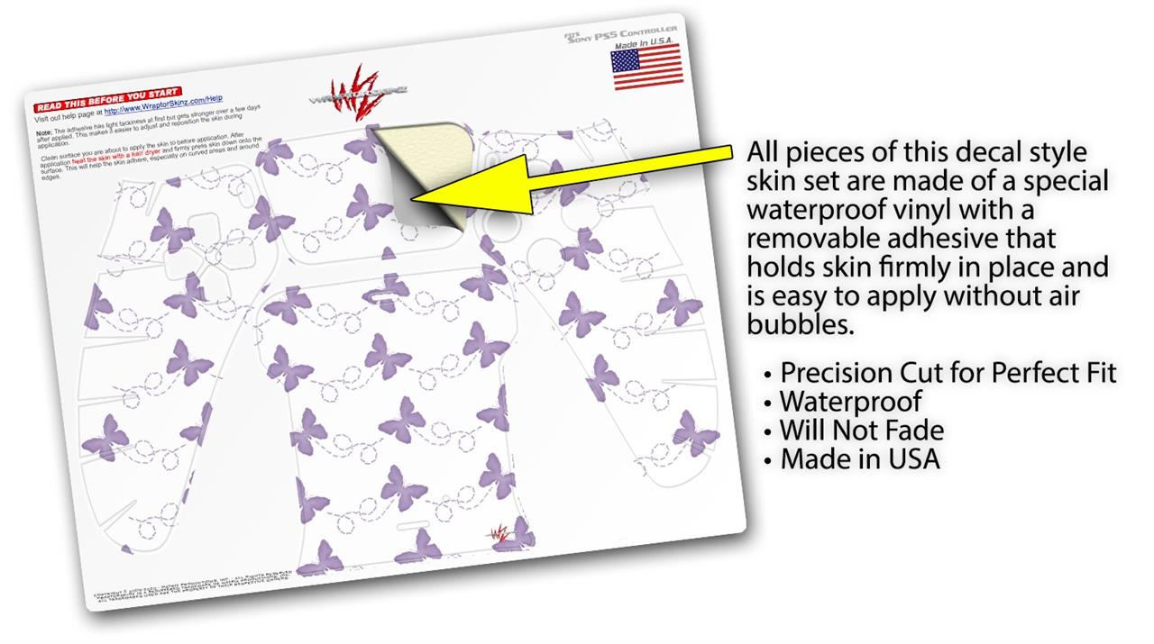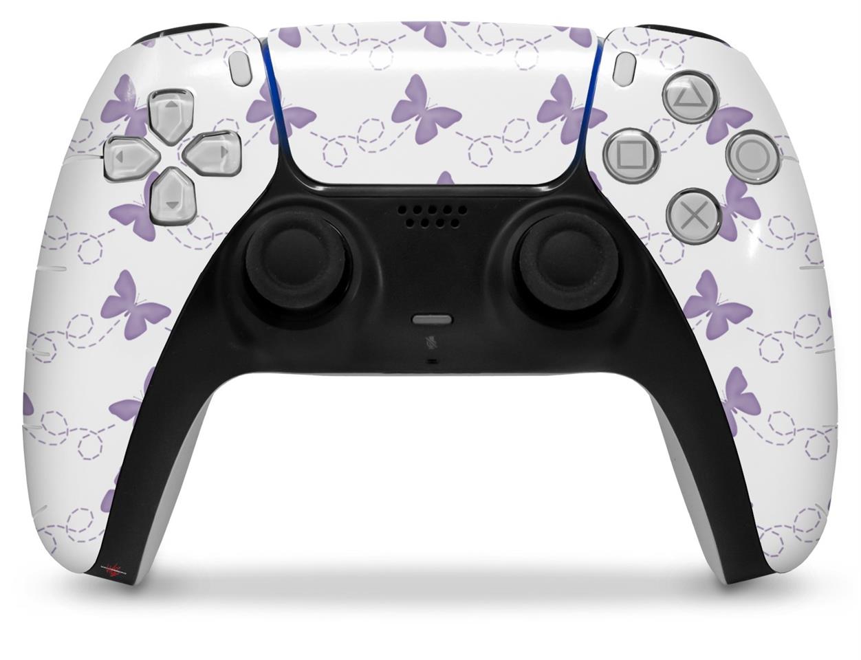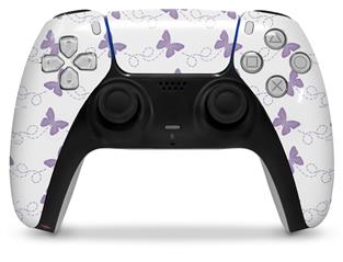 WraptorSkinz Skin Wrap compatible with the Sony PS5 DualSense Controller Pastel Butterflies Purple on White (CONTROLLER NOT INCLUDED)