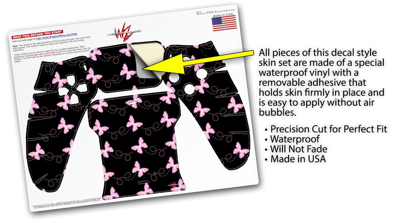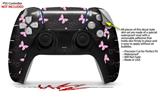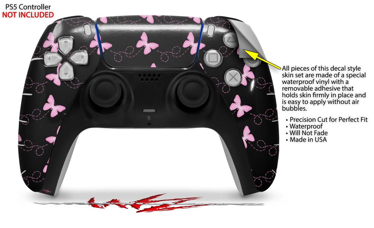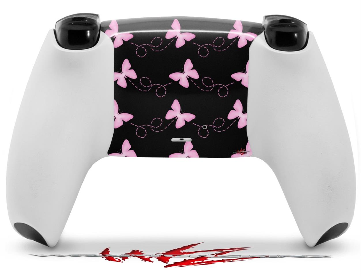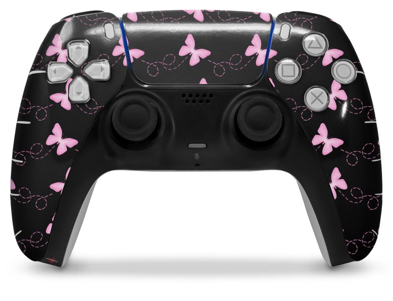 WraptorSkinz Skin Wrap compatible with the Sony PS5 DualSense Controller Pastel Butterflies Pink on Black (CONTROLLER NOT INCLUDED)