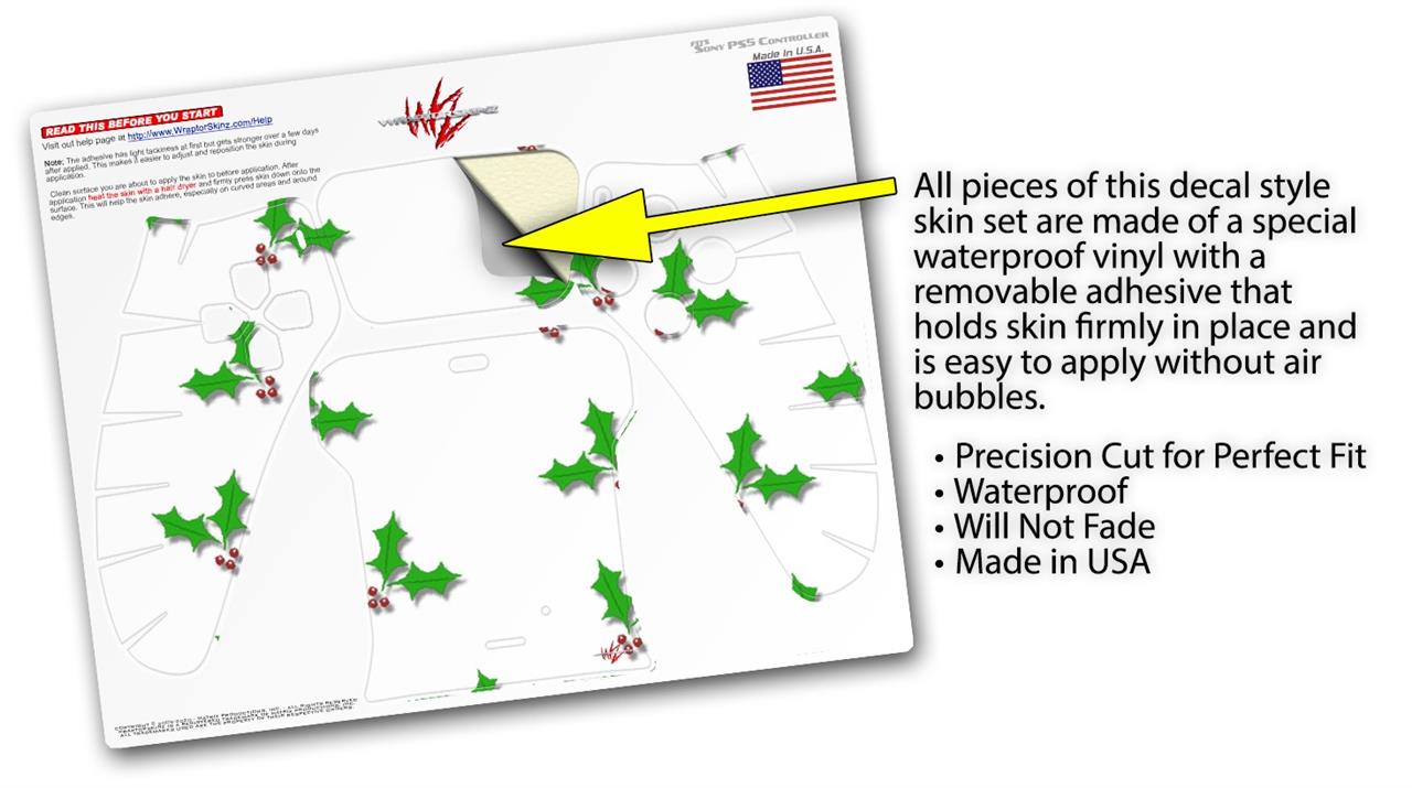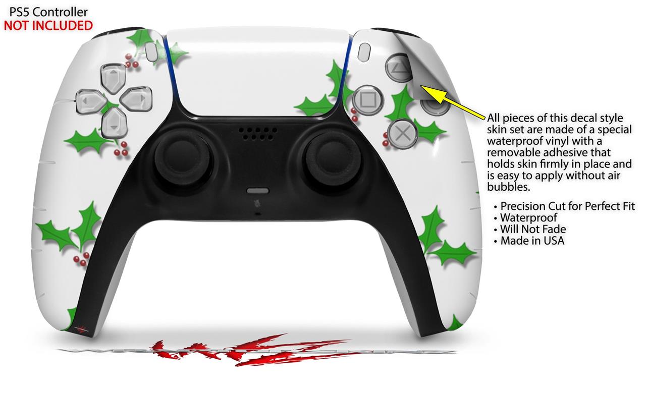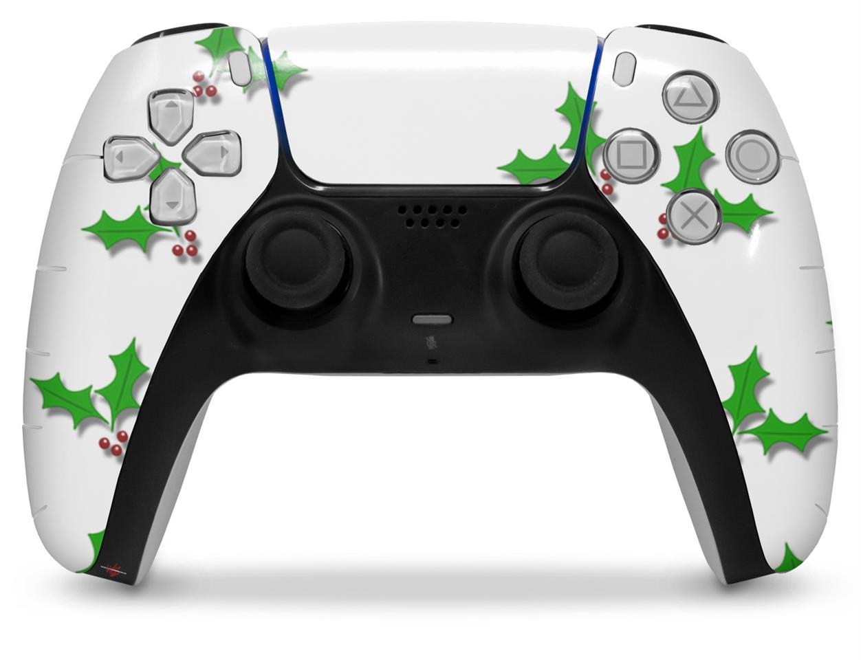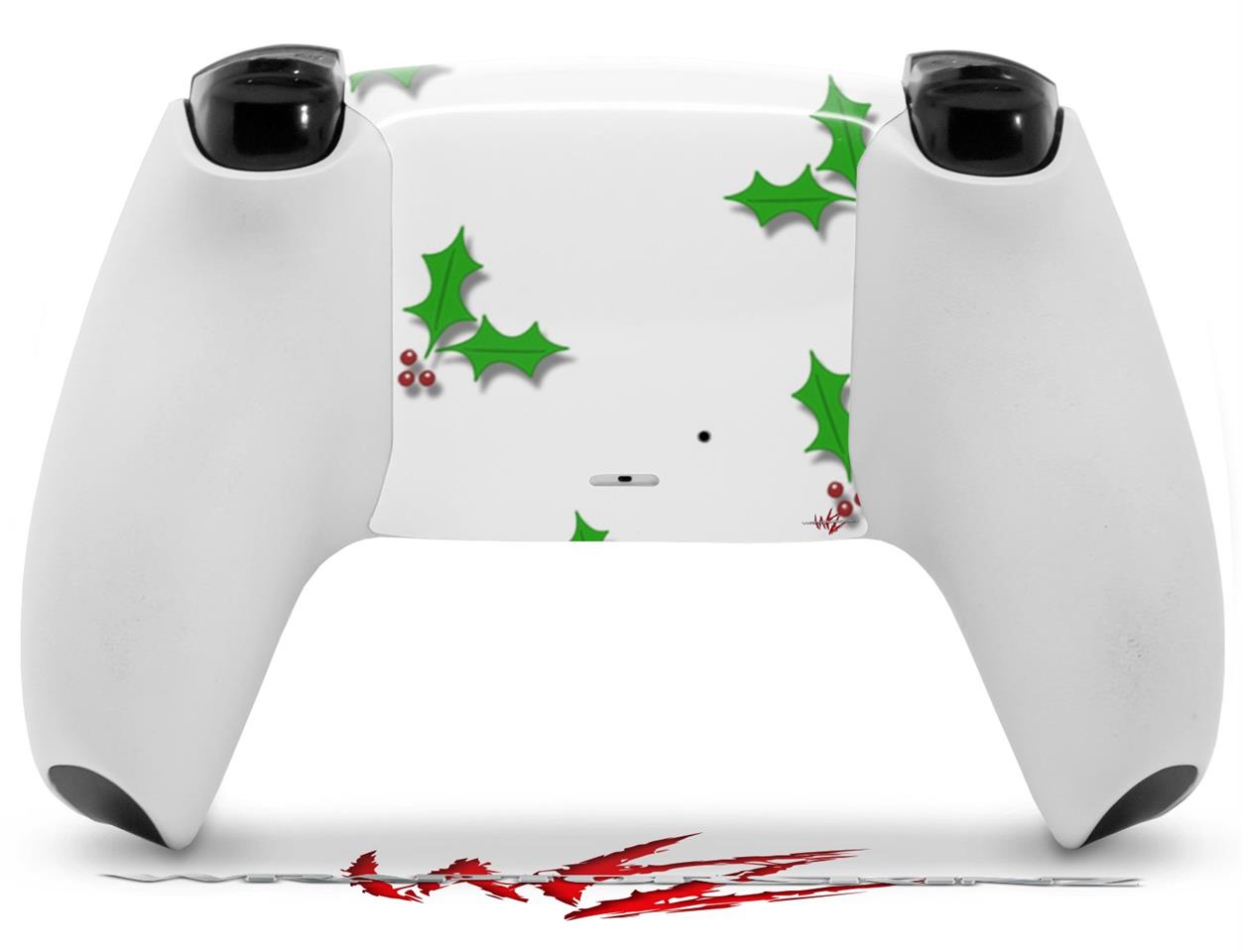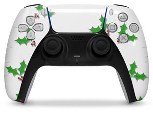 WraptorSkinz Skin Wrap compatible with the Sony PS5 DualSense Controller Christmas Holly Leaves on White (CONTROLLER NOT INCLUDED)