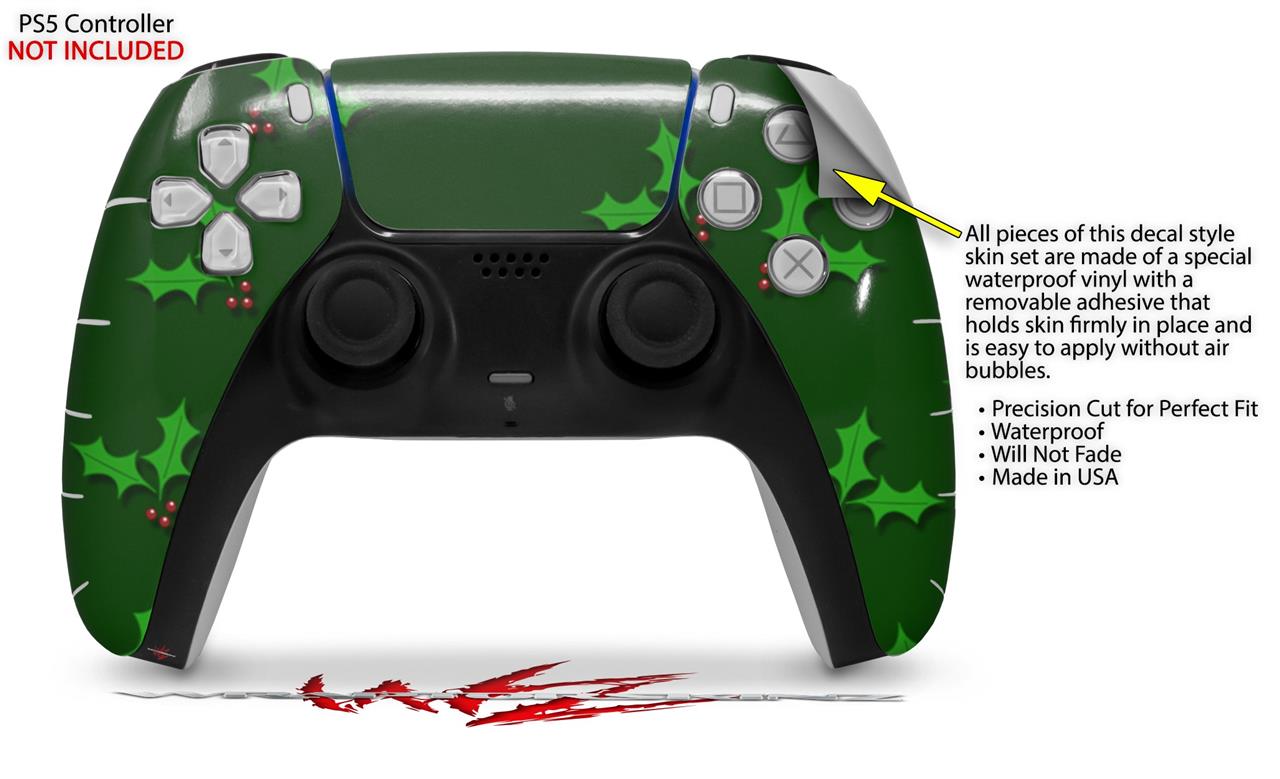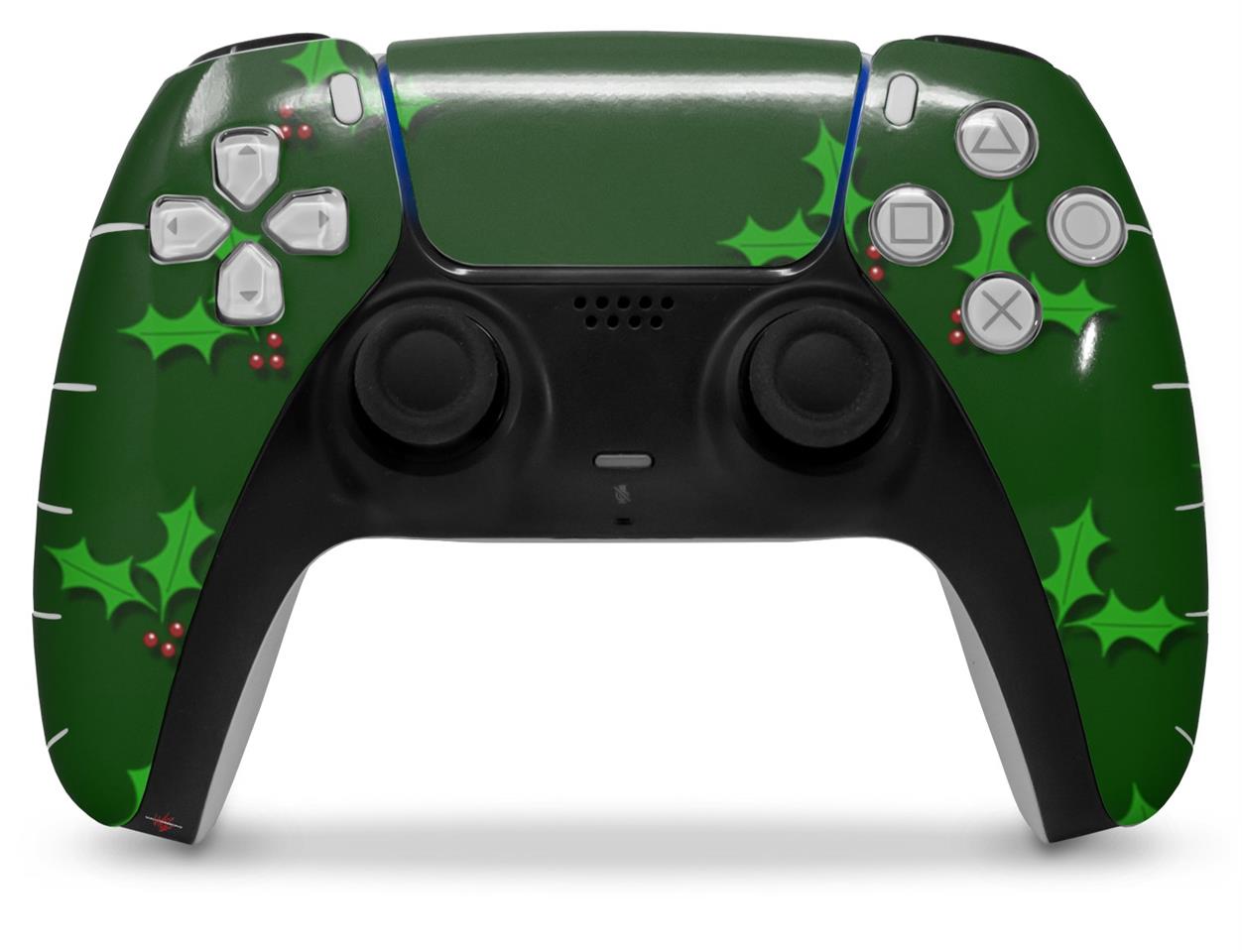 WraptorSkinz Skin Wrap compatible with the Sony PS5 DualSense Controller Christmas Holly Leaves on Green (CONTROLLER NOT INCLUDED)