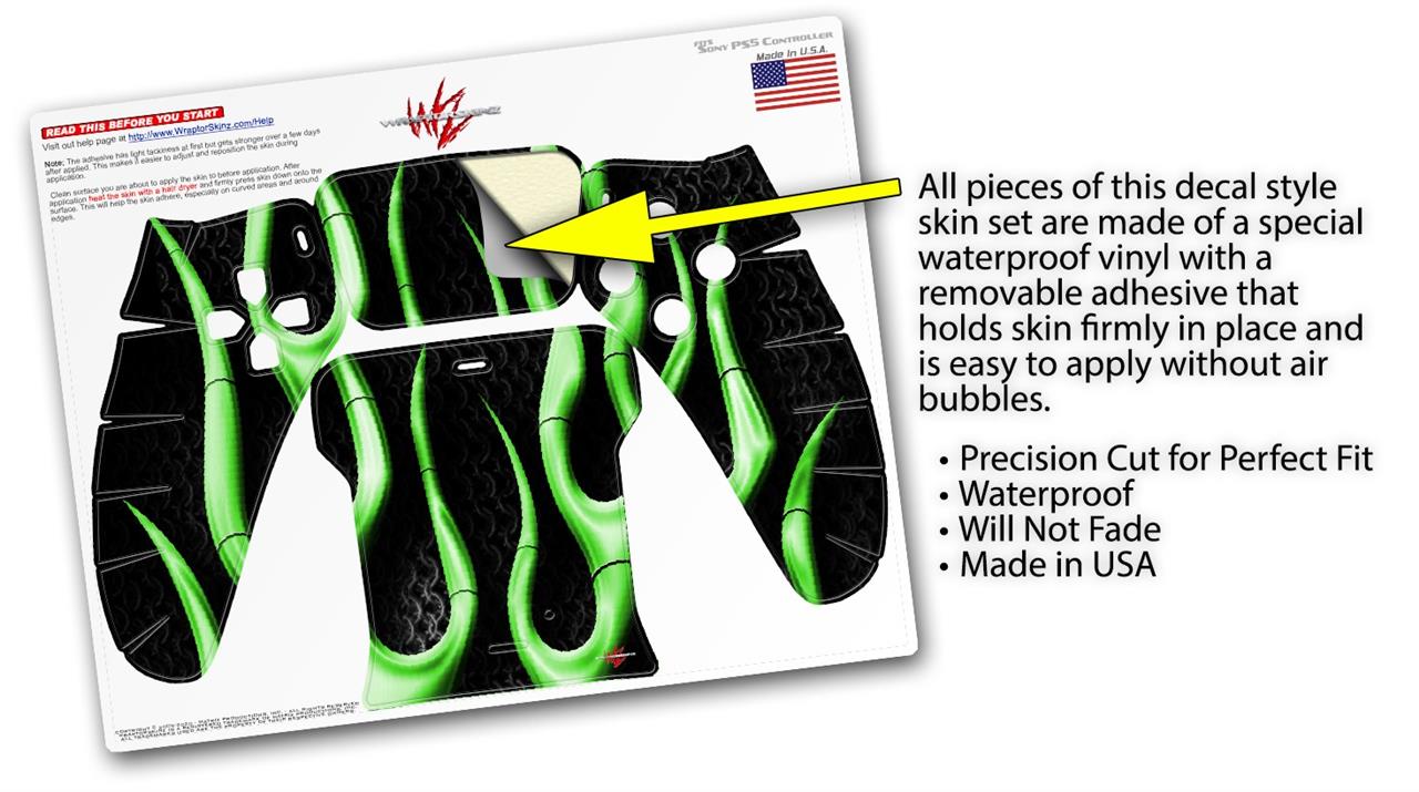 WraptorSkinz Skin Wrap compatible with the Sony PS5 DualSense Controller Metal Flames Green (CONTROLLER NOT INCLUDED)