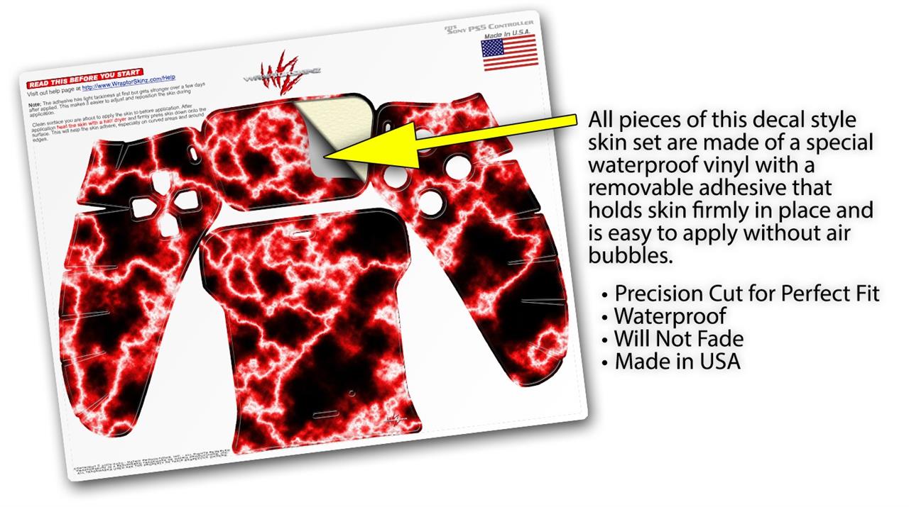 WraptorSkinz® skin wraps for the Sony Playstation 5 controller are printed using superb photo quality designs and vibrant colors printed with special fade resistant inks that last even in direct sun for years. WraptorSkinz are a composite of two layers of commercial grade materials. The bottom layer is a soft, flexible vinyl with a special removable adhesive that is easily positioned, applied without air bubbles. Next we print the bottom layer with UV protected, fade resistant inks that deliver superb photo quality designs in vibrant colors. Last, we bond a professional grade laminate over the entire skin adding a glossy protective finish. This product is not affiliated with or endorsed by Sony or the Playstation brand.