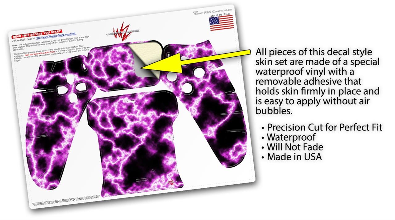 WraptorSkinz® skin wraps for the Sony Playstation 5 controller are printed using superb photo quality designs and vibrant colors printed with special fade resistant inks that last even in direct sun for years. WraptorSkinz are a composite of two layers of commercial grade materials. The bottom layer is a soft, flexible vinyl with a special removable adhesive that is easily positioned, applied without air bubbles. Next we print the bottom layer with UV protected, fade resistant inks that deliver superb photo quality designs in vibrant colors. Last, we bond a professional grade laminate over the entire skin adding a glossy protective finish. This product is not affiliated with or endorsed by Sony or the Playstation brand.