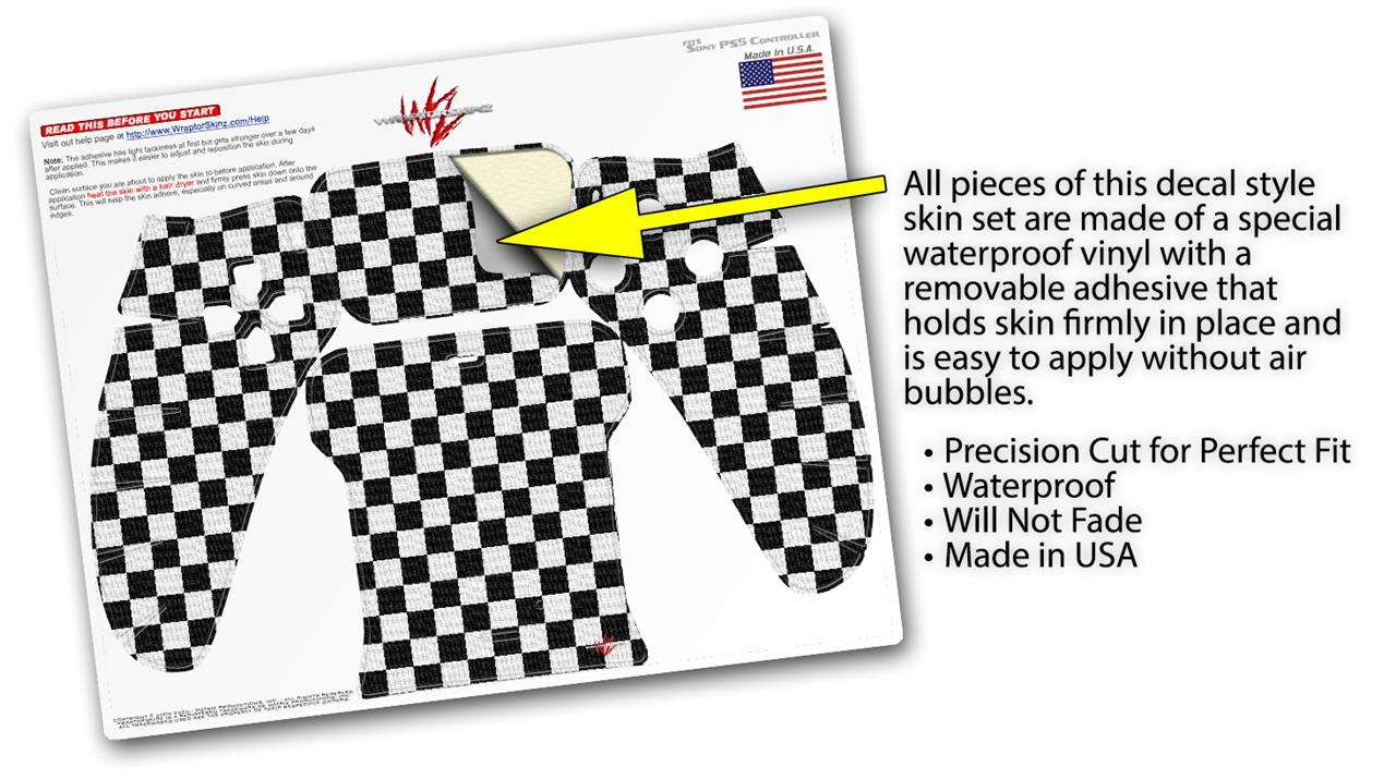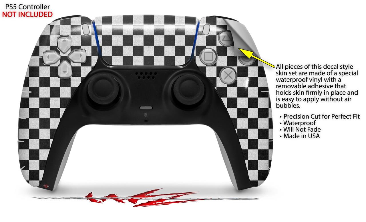 WraptorSkinz Skin Wrap compatible with the Sony PS5 DualSense Controller Checkered Canvas Black and White (CONTROLLER NOT INCLUDED)
