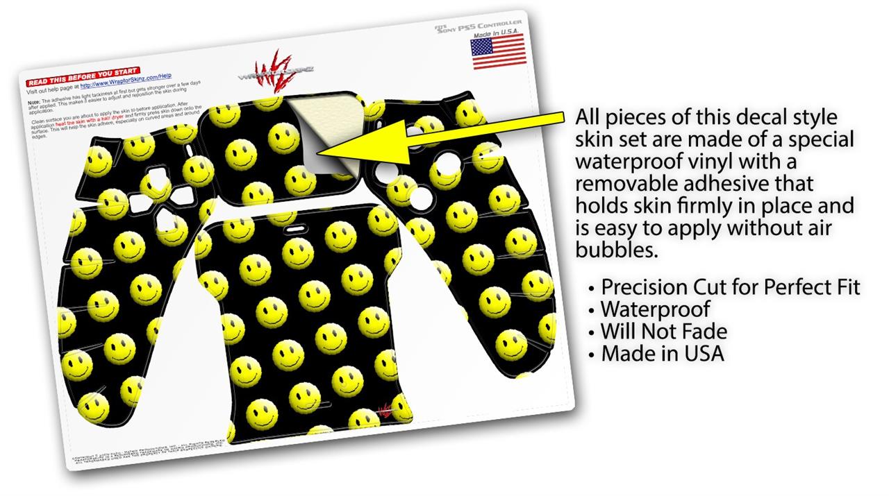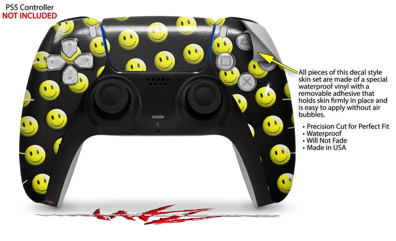 WraptorSkinz Skin Wrap compatible with the Sony PS5 DualSense Controller Smileys on Black (CONTROLLER NOT INCLUDED)