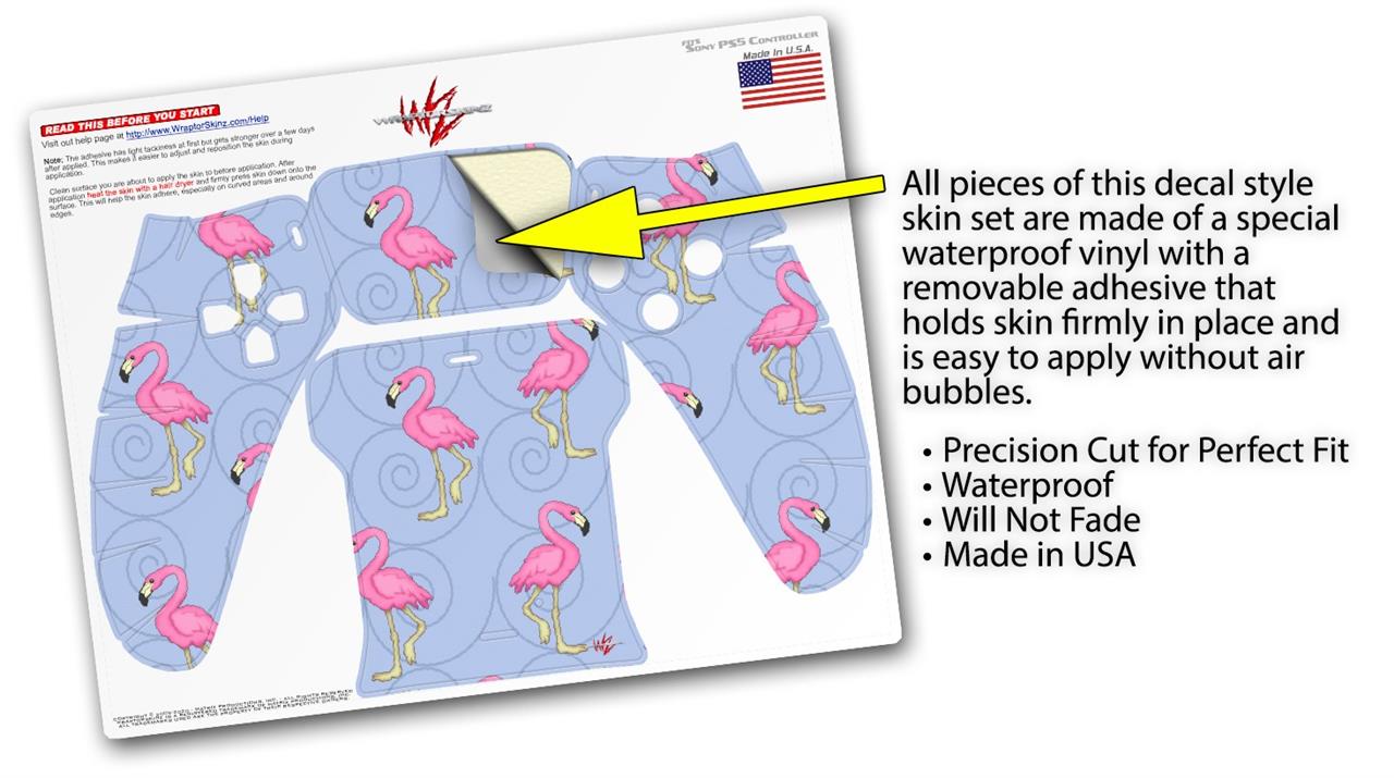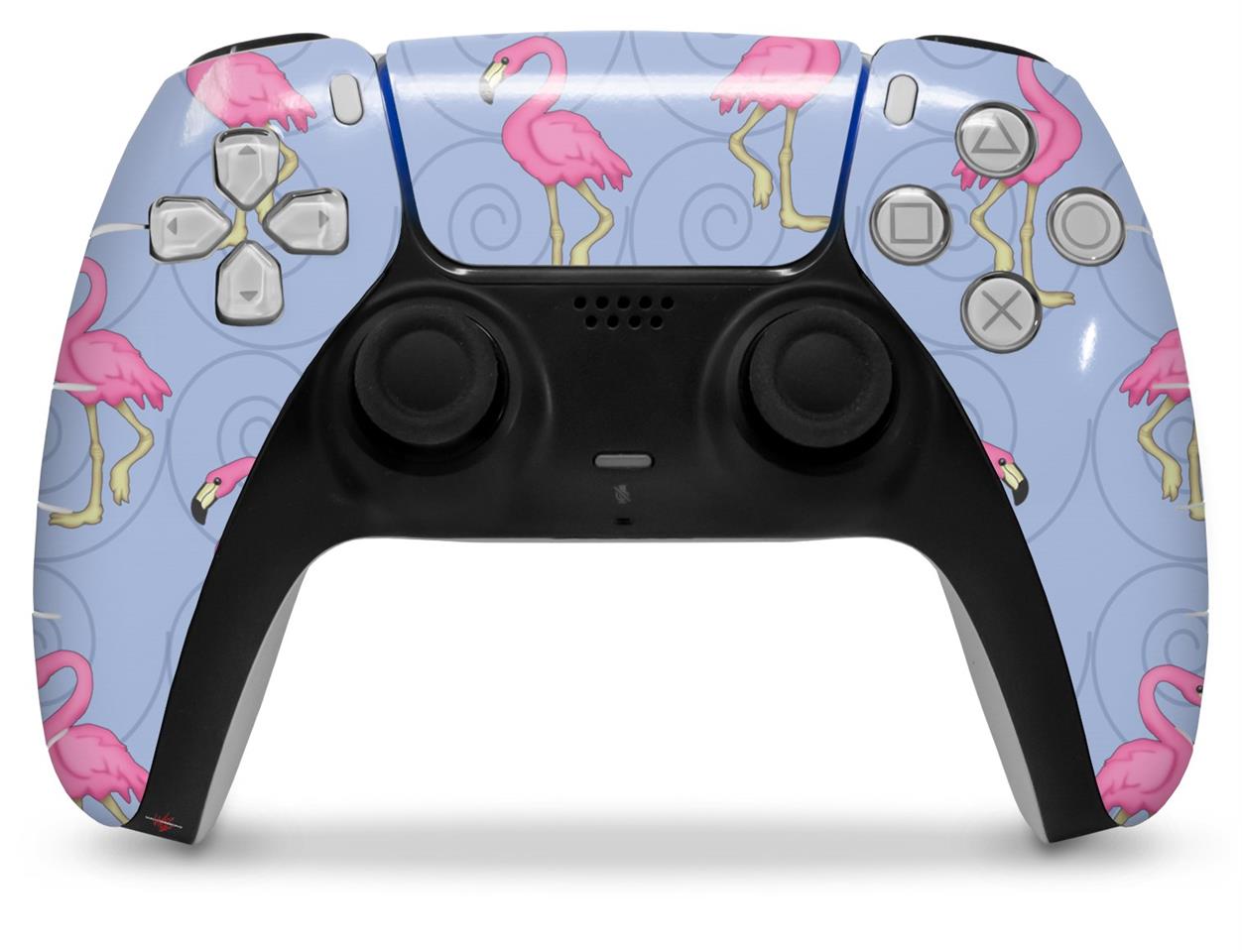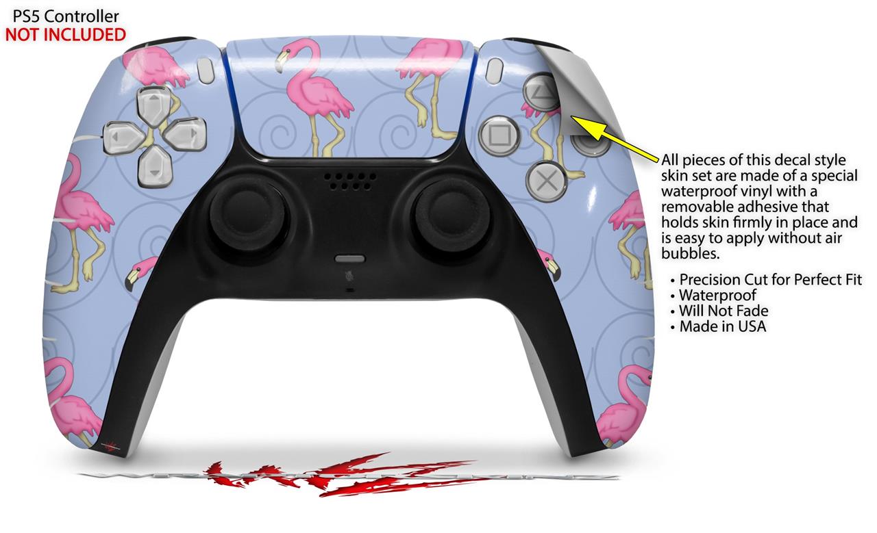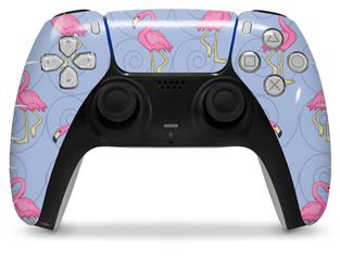 WraptorSkinz Skin Wrap compatible with the Sony PS5 DualSense Controller Flamingos on Blue (CONTROLLER NOT INCLUDED)