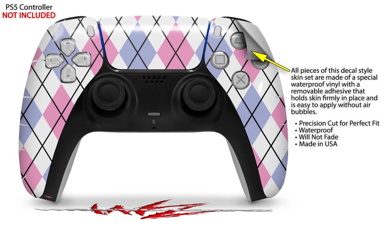 WraptorSkinz Skin Wrap compatible with the Sony PS5 DualSense Controller Argyle Pink and Blue (CONTROLLER NOT INCLUDED)