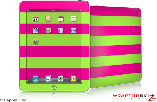 iPad Skin - Kearas Psycho Stripes Neon Green and Hot Pink