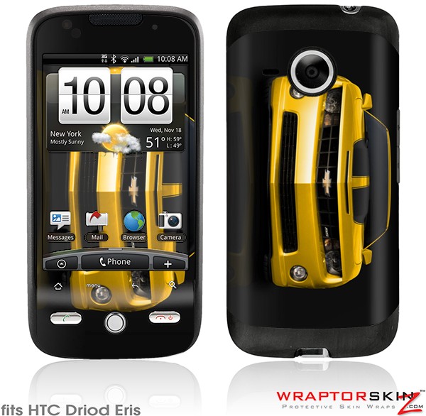 HTC Droid Eris Skin - 2010 Chevy Camaro Yellow - Black Stripes on Black