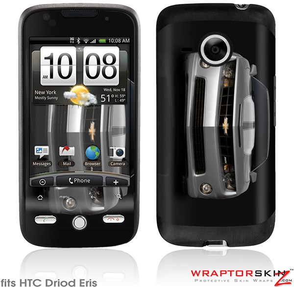 HTC Droid Eris Skin - 2010 Chevy Camaro Silver - White Stripes on Black