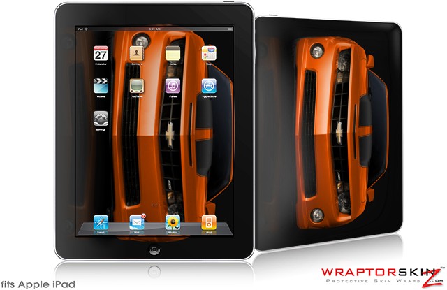 iPad Skin - 2010 Chevy Camaro Orange - Black Stripes on Black
