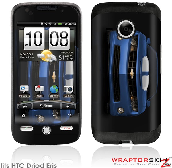 HTC Droid Eris Skin - 2010 Chevy Camaro Aqua - White Stripes on Black