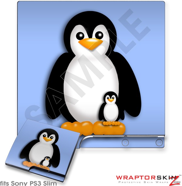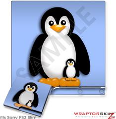 Sony PS3 Slim Skin - Penguins on Blue