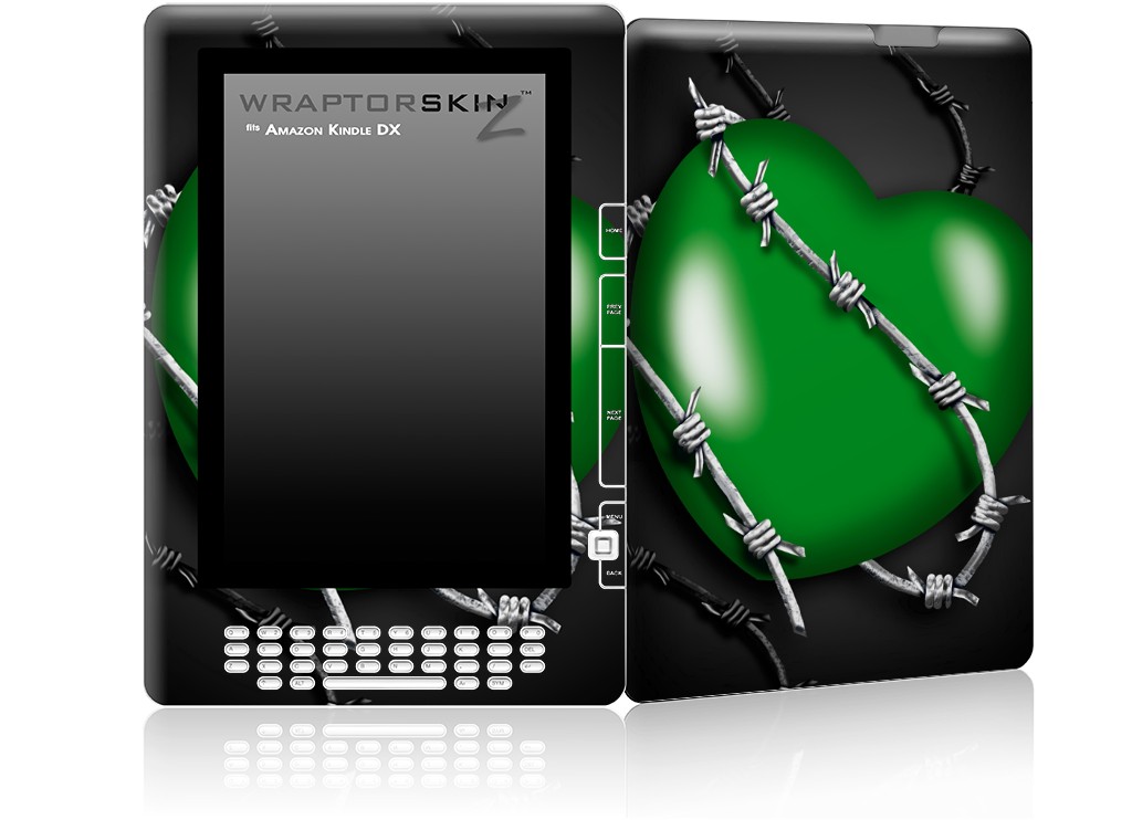 Barbwire Heart Green - Decal Style Skin for Amazon Kindle DX