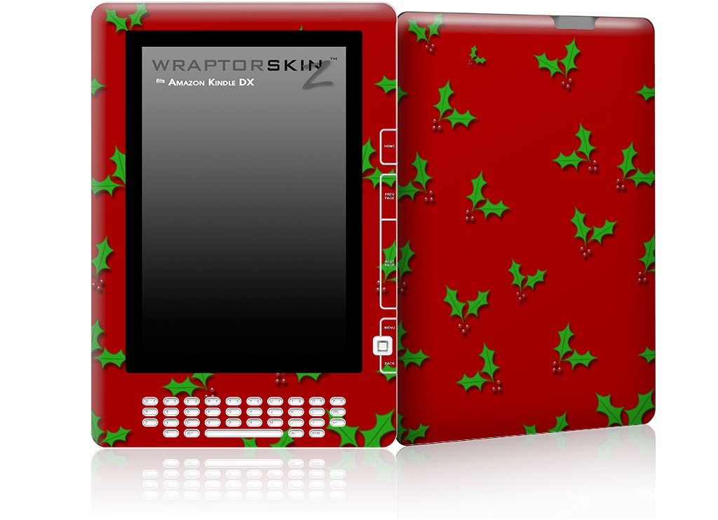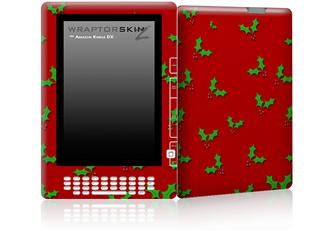 Christmas Holly Leaves on Red - Decal Style Skin for Amazon Kindle DX