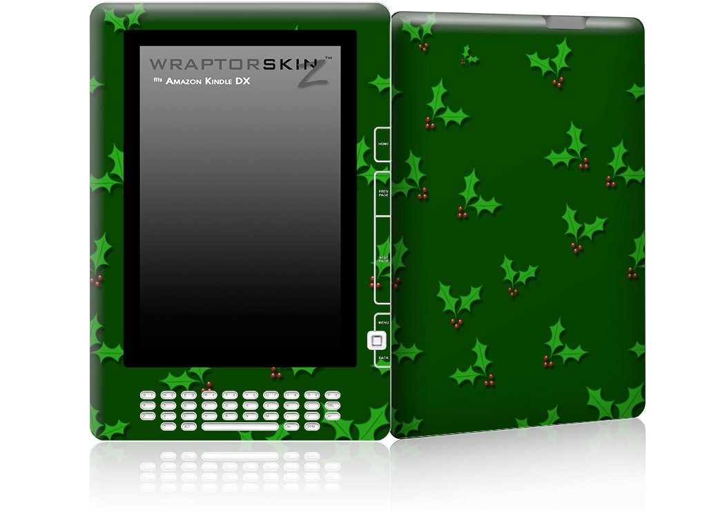 Christmas Holly Leaves on Green - Decal Style Skin for Amazon Kindle DX