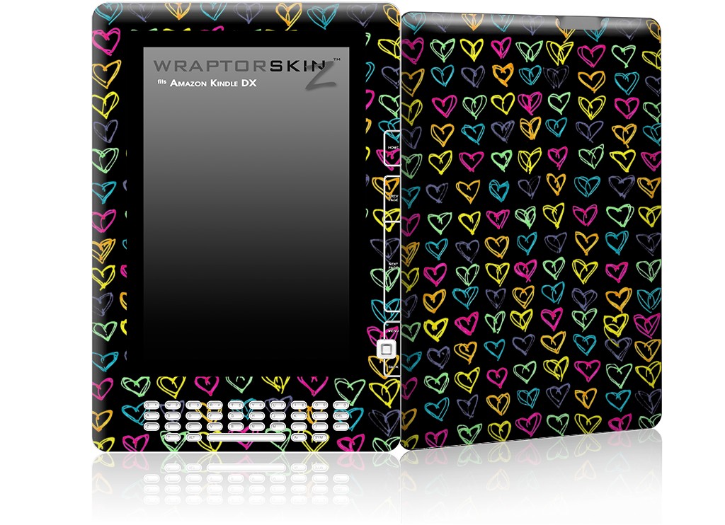Kearas Hearts Black - Decal Style Skin for Amazon Kindle DX