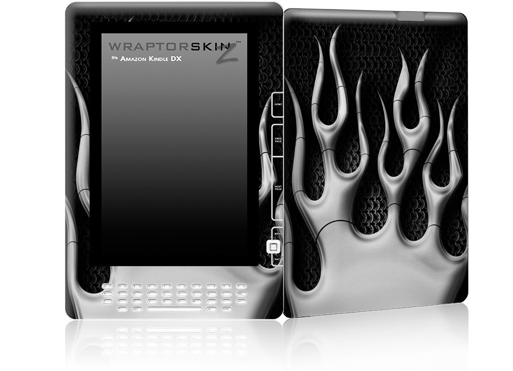 Metal Flames Chrome - Decal Style Skin for Amazon Kindle DX