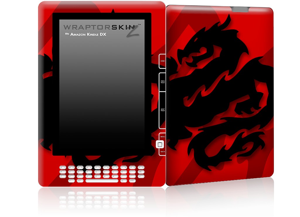 Oriental Dragon Black on Red - Decal Style Skin for Amazon Kindle DX