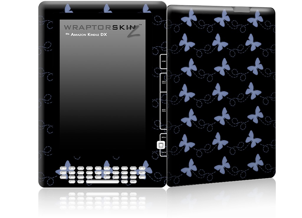 Pastel Butterflies Blue on Black - Decal Style Skin for Amazon Kindle DX
