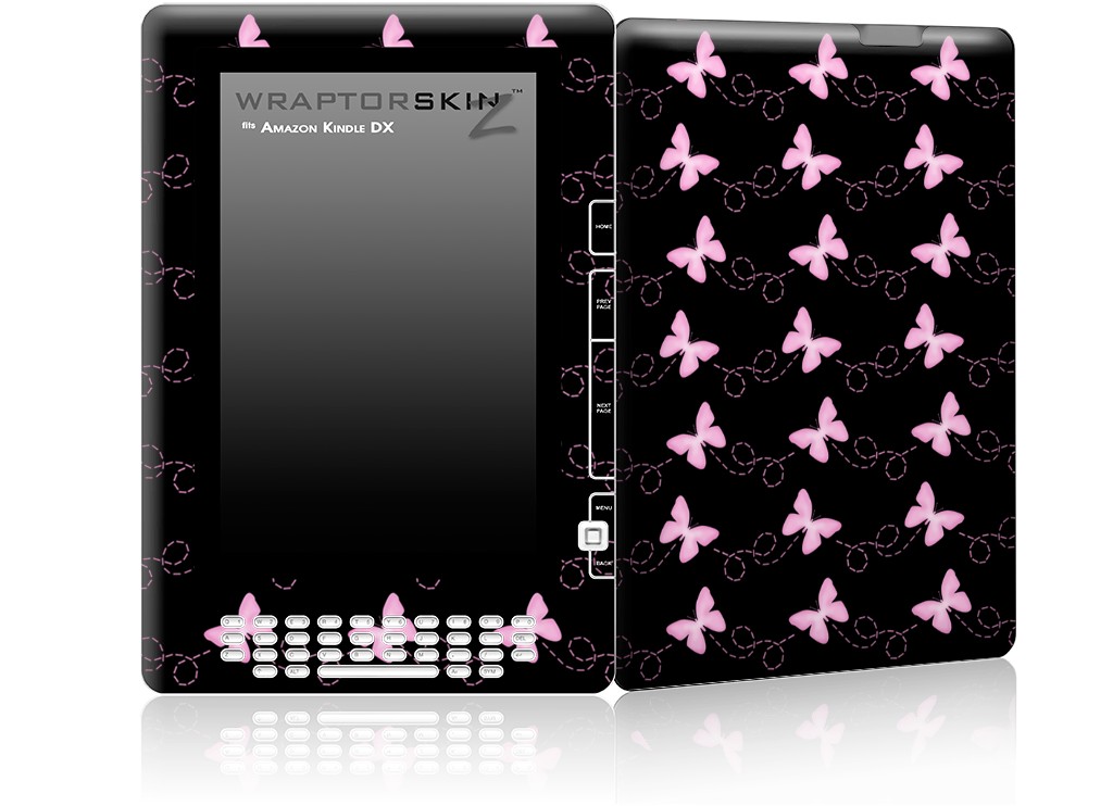 Pastel Butterflies Pink on Black - Decal Style Skin for Amazon Kindle DX