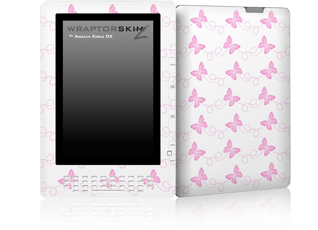 Pastel Butterflies Pink on White - Decal Style Skin for Amazon Kindle DX