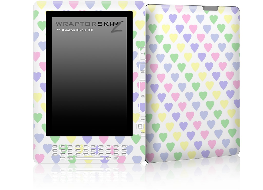 Pastel Hearts on White - Decal Style Skin for Amazon Kindle DX