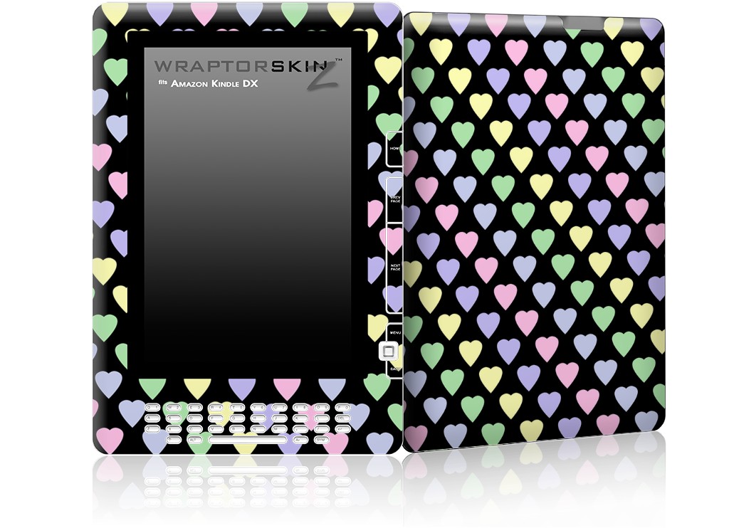 Pastel Hearts on Black - Decal Style Skin for Amazon Kindle DX