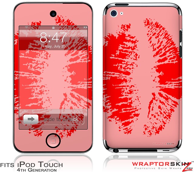 iPod Touch 4G Skin - Big Kiss Red on Pink