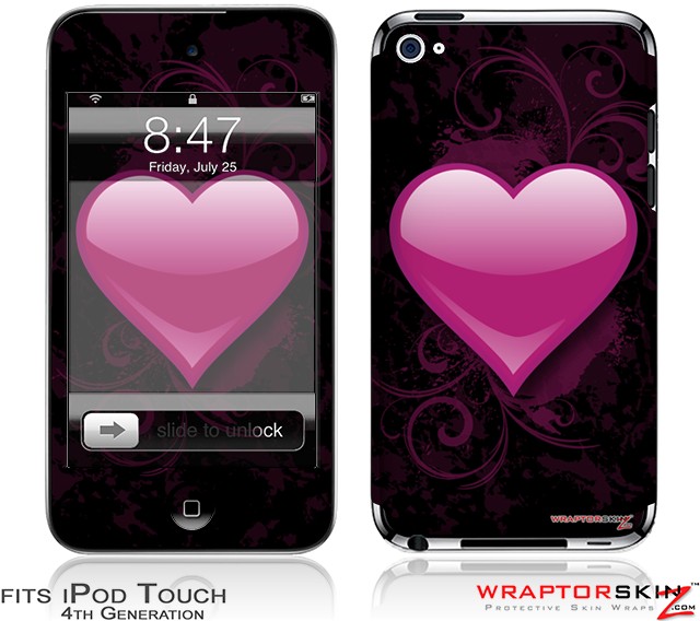 iPod Touch 4G Skin - Glass Heart Grunge Hot Pink