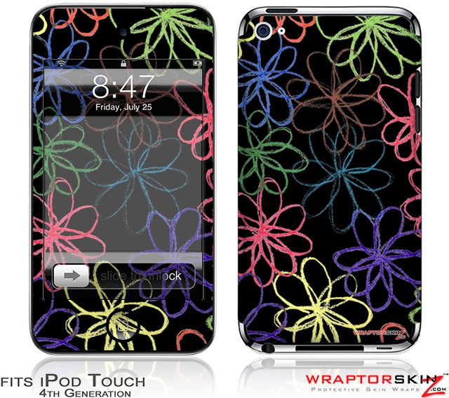 iPod Touch 4G Skin - Kearas Flowers on Black