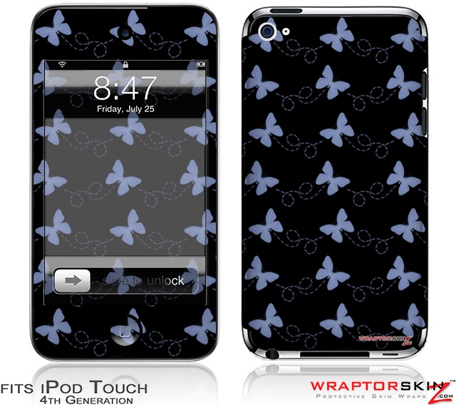 iPod Touch 4G Skin - Pastel Butterflies Blue on Black