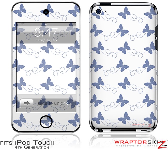 iPod Touch 4G Skin - Pastel Butterflies Blue on White
