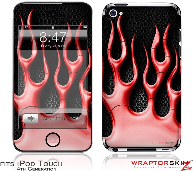 iPod Touch 4G Skin - Metal Flames Red
