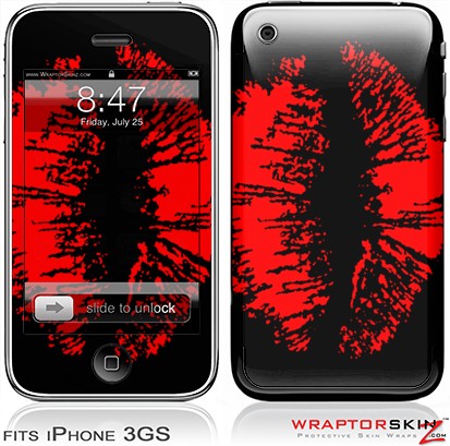 iPhone 3GS Decal Style Skin - Big Kiss Red Lips on Black
