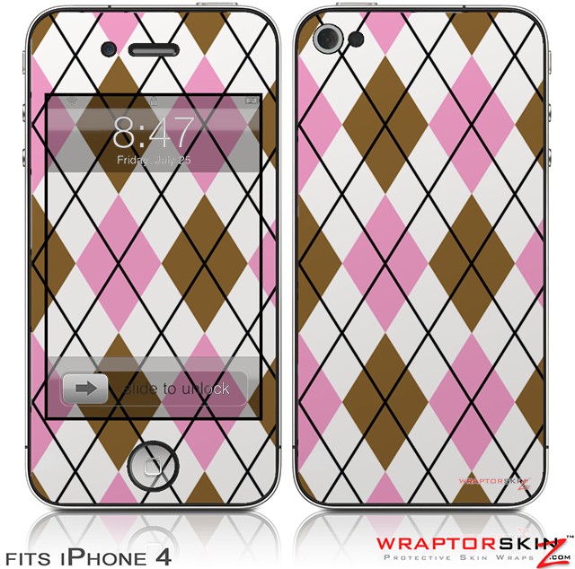 iPhone 4 Skin - Argyle Pink and Brown (DOES NOT fit newer iPhone 4S)