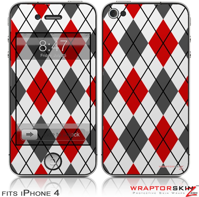 iPhone 4 Skin - Argyle Red and Gray (DOES NOT fit newer iPhone 4S)