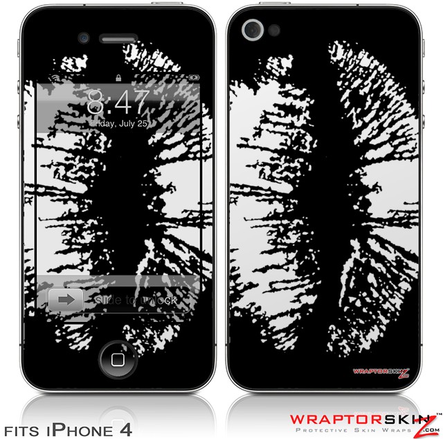 iPhone 4 Skin - Big Kiss White on Black (DOES NOT fit newer iPhone 4S)