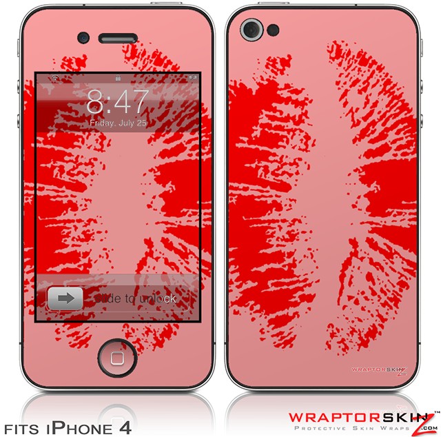 iPhone 4 Skin - Big Kiss Red on Pink (DOES NOT fit newer iPhone 4S)