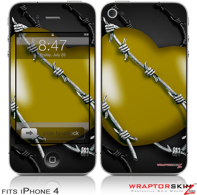 iPhone 4 Skin - Barbwire Heart Yellow (DOES NOT fit newer iPhone 4S)