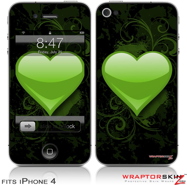iPhone 4 Skin - Glass Heart Grunge Green (DOES NOT fit newer iPhone 4S)