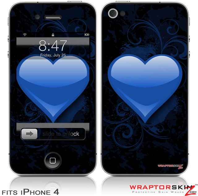 iPhone 4 Skin - Glass Heart Grunge Blue (DOES NOT fit newer iPhone 4S)