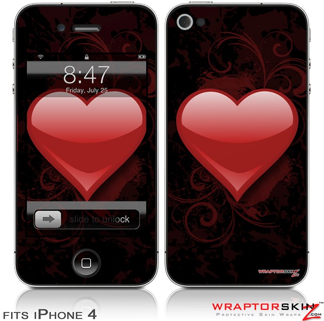 iPhone 4 Skin - Glass Heart Grunge Red (DOES NOT fit newer iPhone 4S)