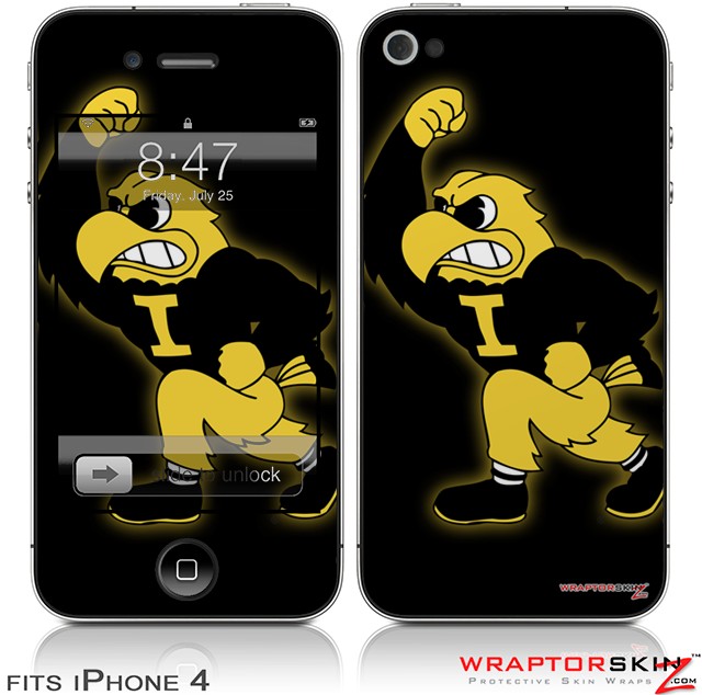 iPhone 4 Skin - Iowa Hawkeyes Herky on Black (DOES NOT fit newer iPhone 4S)