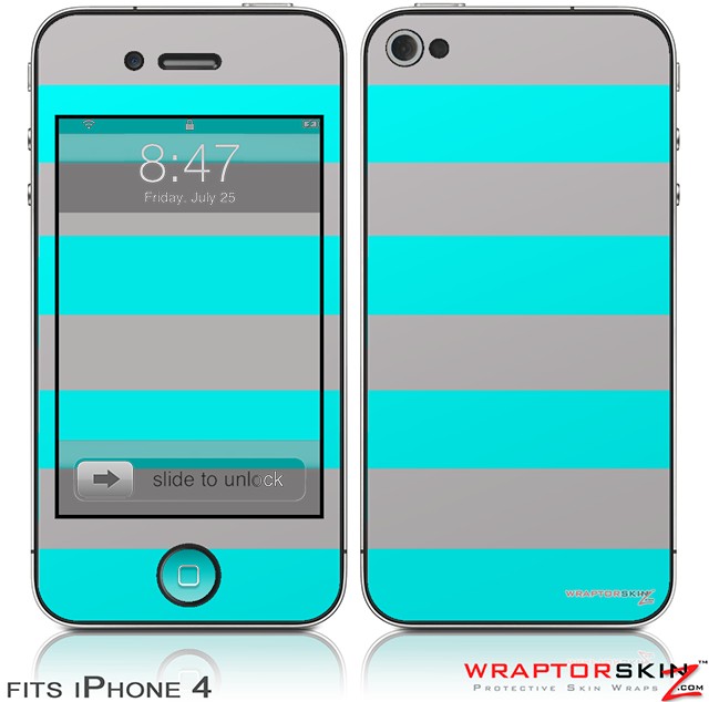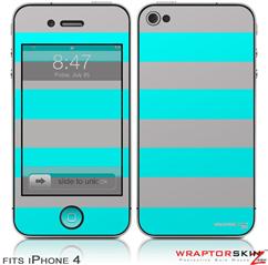 iPhone 4 Skin - Kearas Psycho Stripes Neon Teal and Gray (DOES NOT fit newer iPhone 4S)