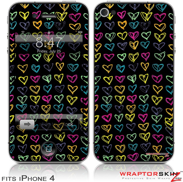 iPhone 4 Skin - Kearas Hearts Black (DOES NOT fit newer iPhone 4S)